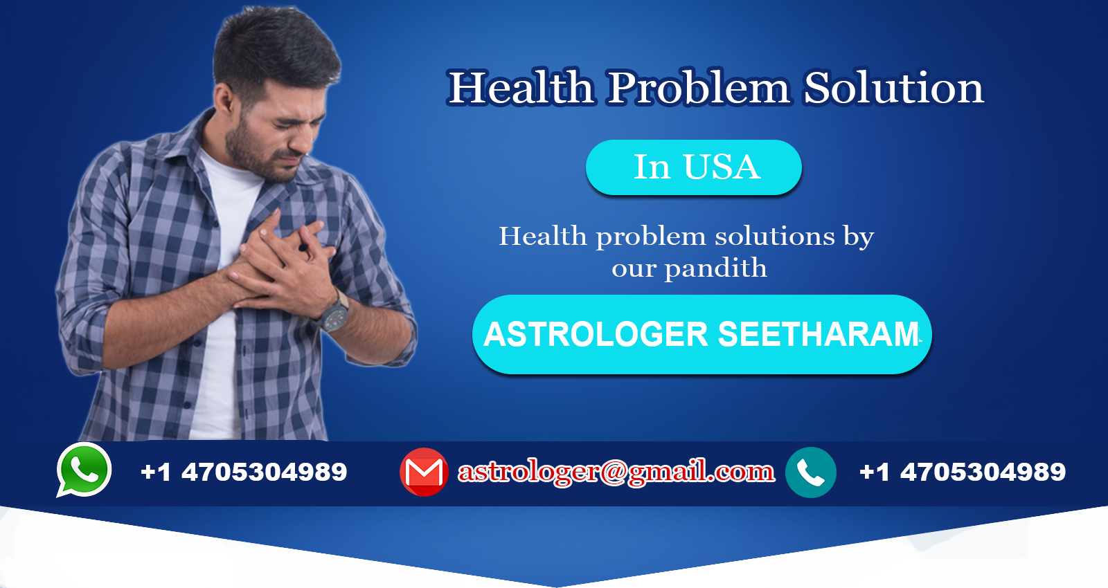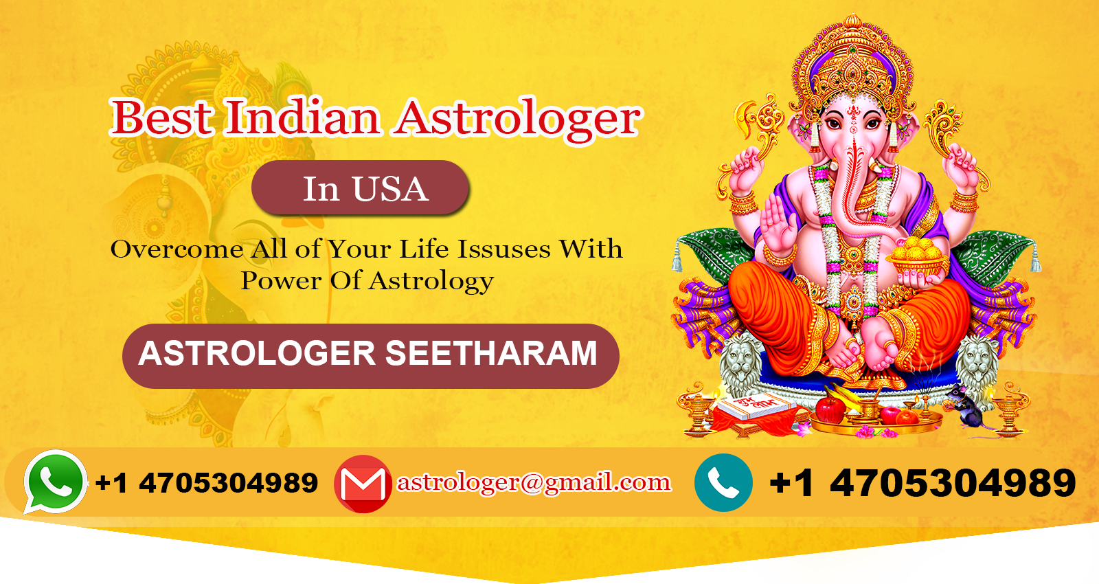 He is an expert in black magic removal, love problem, financial problems, divorce, Relationship, Spiritual Healing, Bad curse removal, Vashikaran, palm reading, Business problems etc. Astrologer Seetharam proving the astrology services around the country of USA. our service locations are Atlanta, Georgea, Newyork, Florida, California, . Astrologer Seetharam expert in solve most complicated problems through astrology. Call us on +1 4705304989.